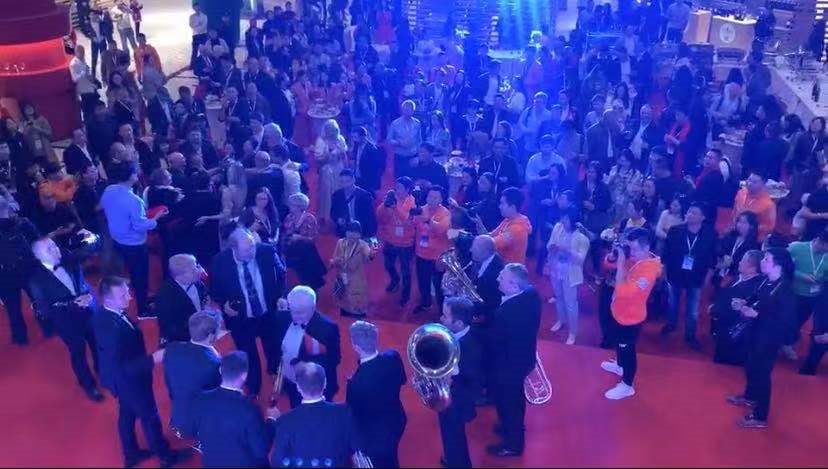 2019首届世界葡萄酒庄主节在优雅的大提琴小提琴演奏中缓缓开始,台下的人们瞬间被带进了音乐的殿堂,虽然不能去演绎这些音乐,但我们可以欣赏。请不必感到惊异,因为这就是音乐的魅力。听吧,当一首流行音乐在你耳中跳动时,音乐已化作一个个精灵激动着你身上的每一个细胞!靶觉到了吗?血液正在燃烧;听到了吗?心跳正在加剧。当你发觉自己不知不觉间跟着音乐节拍翩翩起舞时,请不要感到惊奇,因为这就是音乐的魅力。听着动人的音乐,面对面交流的经销商们之间的气氛更加融洽了。后续更有奥地利其实音乐团,西班牙舞蹈,现场气氛十分融洽!
