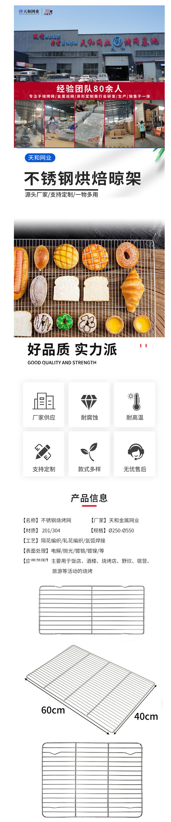 烘焙不沾冷却架食品级晾架面包蛋糕饼干烤盘电泳烘焙冷却网架