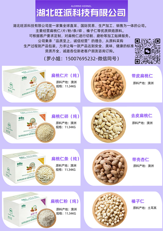 是一家集全球直采、国际贸易、生产加工、销售为一体的公司。主要经营扁桃仁片、粉、条、碎;榛子仁等优质烘焙原料。
