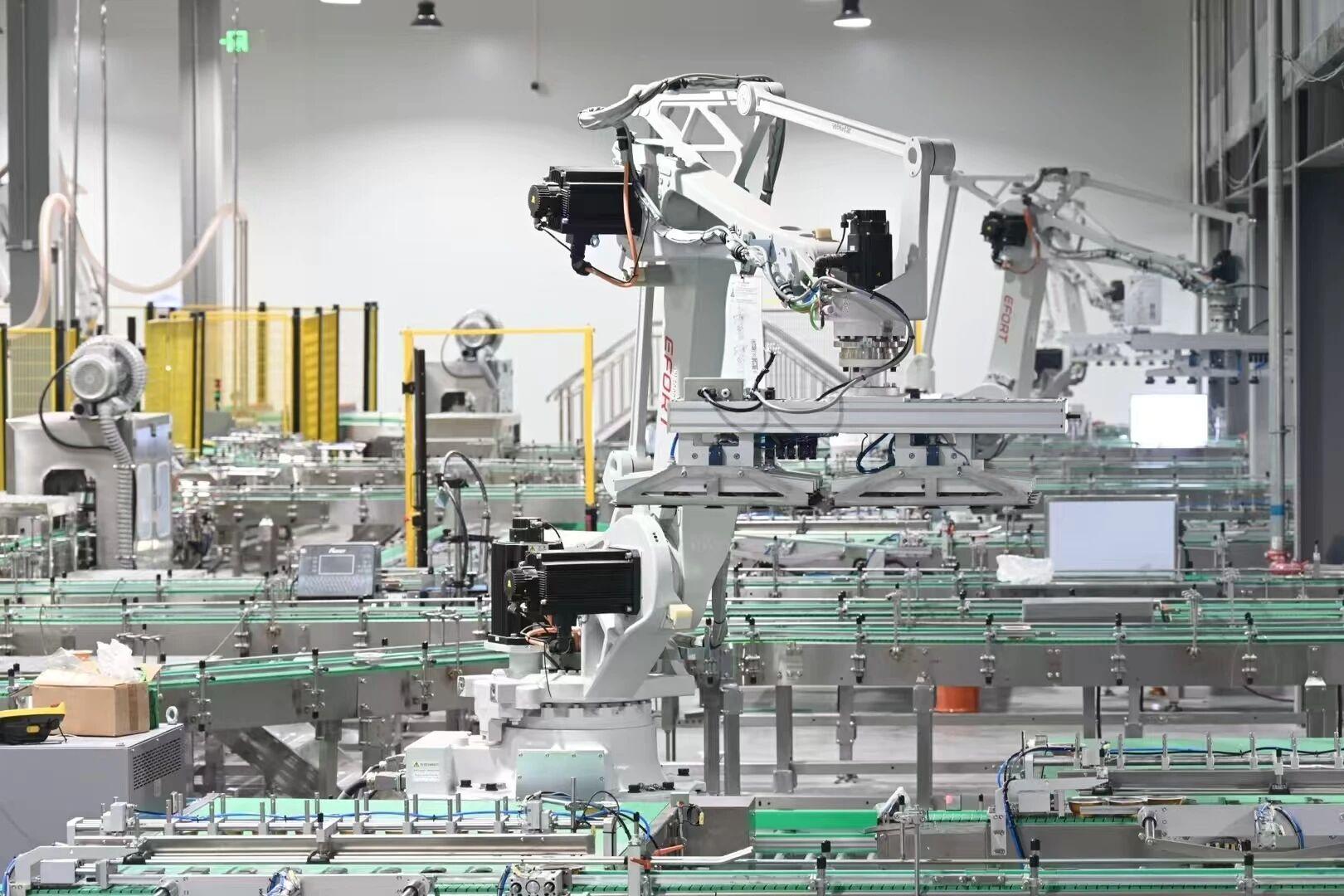 启动仪式后,与会嘉宾走进工厂,近距离感受数智化生产的科技魅力。在秦帝鲜集智能化生产线上,50台工业机器人精准完成非遗美食甑糕的分装作业,AI中央调度系统实现全流程实时管控,让生产过程更高效、更精准。