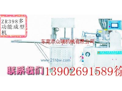 ZR398多功能组合成型机,由主机、捏花机、加馅机、分离式切台组合而成,该机组配备日本结构成套刀具、德国SIKE光电、台湾齿轮减速马达、韩国LG可编程控制器、网纹输送带,同食品接触部分均采用优质不锈钢,确保生产运行平稳、可靠、卫生。