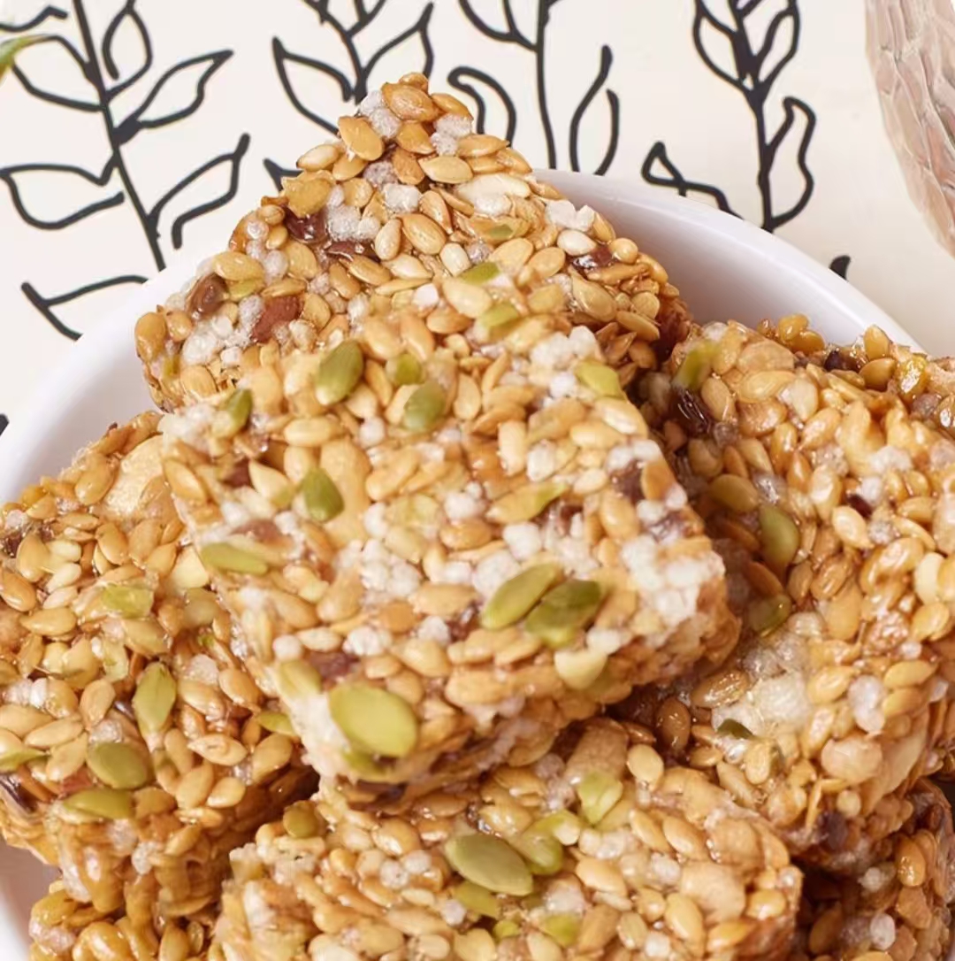 新品上市-亚麻籽坚果酥:0蔗糖,甄选亚麻籽、核桃仁、白芝麻、南瓜仁等,酥脆醇香,烘焙渠道专供!